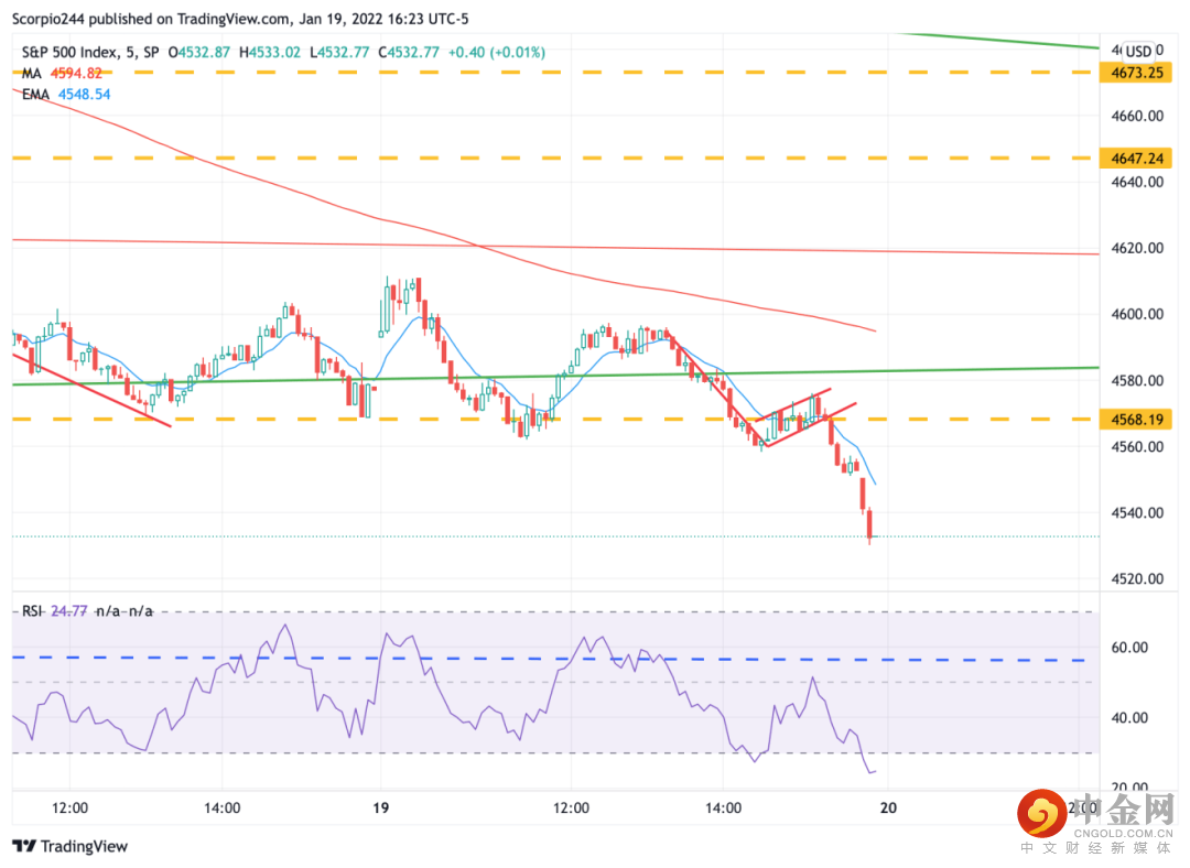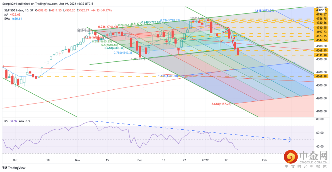 标普500指数收盘刚好位于12月20日的低点处。我估计标普500指数将跌破这一低点,该指数将回落至10月份4360点附近的低点。