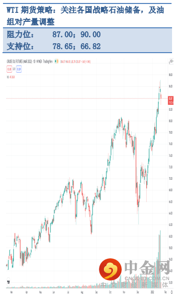 总体来看,虽然市场担忧供应吃紧,但美国原油库存增长,加 之沙特产量和出口都增加,使得油价回落至 85 美元/桶下方;拜登承诺遏制油价走高,以及美国就业或受奥密克戎毒株高于 预期,为油价空头助力;如果本交易日继续收跌,日 K 线图将 形成“三只乌鸦”顶部信号,投资者需要予以警惕。