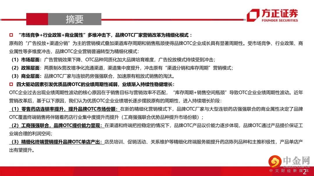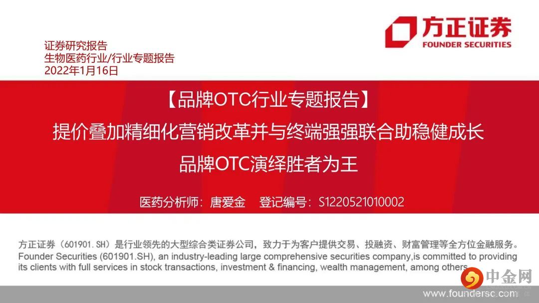 本文来自方正证券研究所于2022年1月16日发布的报告《品牌OTC行业专题报告:提价叠加精细化营销改革并与药店终端强强联合助稳健成长,品牌OTC演绎胜者为王》。