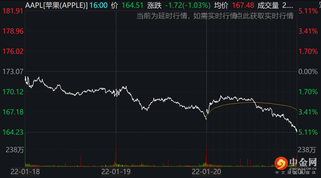 市场评估美债收益率迅速上涨与美联储加息前景,同时美国上周初请失业救济人数远高于市场预期,表明奥密克戎变异毒株感染病例激增打击就业市场,1月20日,美股宽幅震荡全线收跌。
