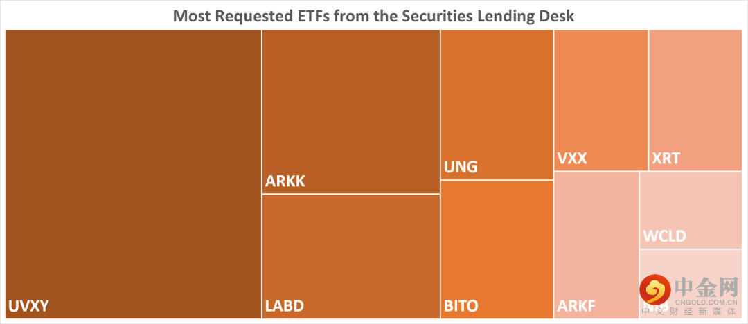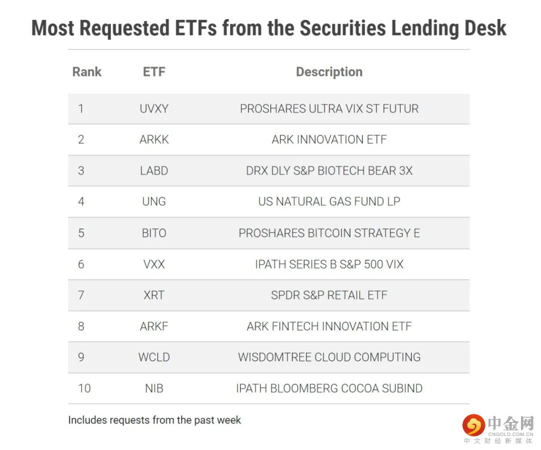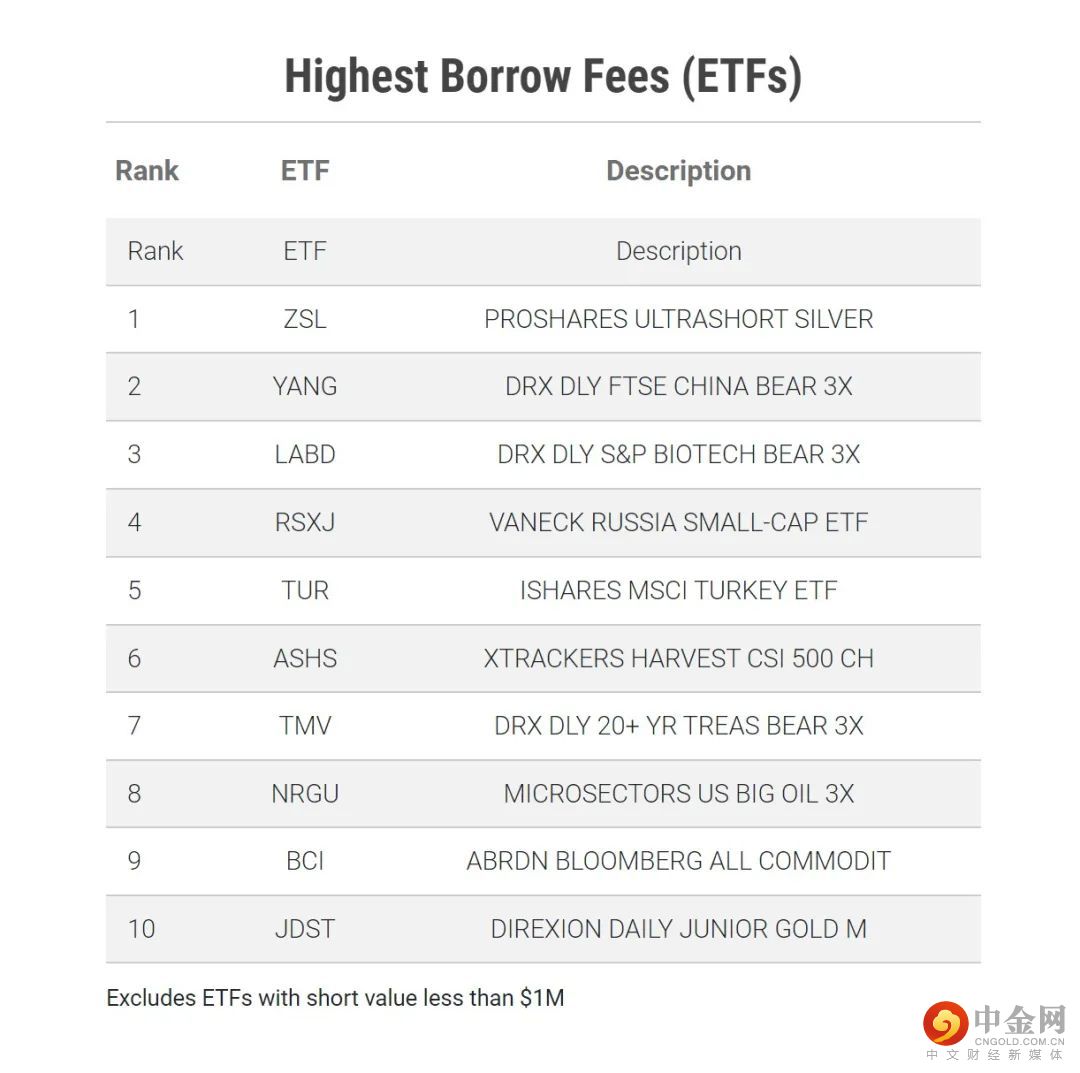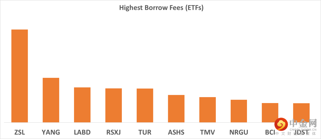 下表中列出的是2022/1/20具有最高借入费用的10个ETF。
