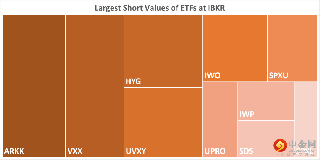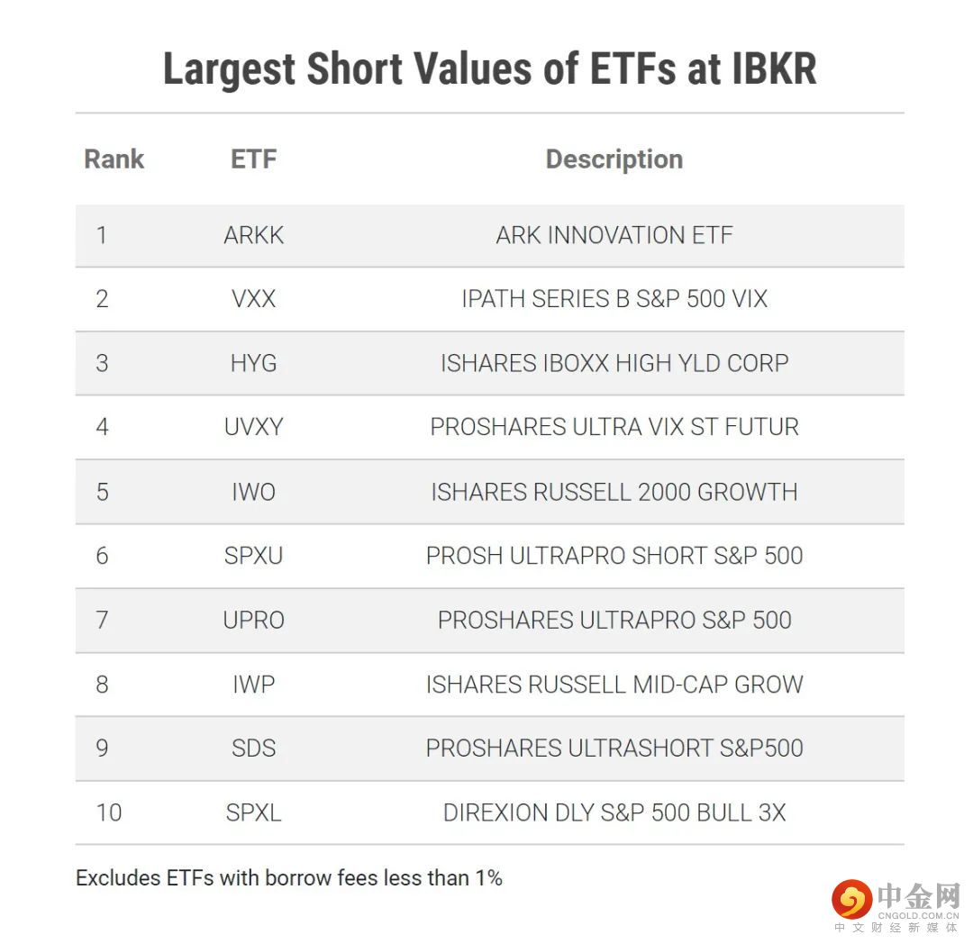 下表中列出的是2022/1/20具有最大做空值的10个ETF。