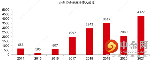 不计ADR市场,国内A股占其余中国公司股票总市值近80%,而A股外资持股比例仅为4.5%,是一个很低的水平。而且海外对中国市场的关注度及兴趣亦愈来愈高,2021年可以看到北向资金累计净流入4321.69亿元,创年度净流入新高。而目前全球共同基金高配A股在一定程度上也反映了这一点。