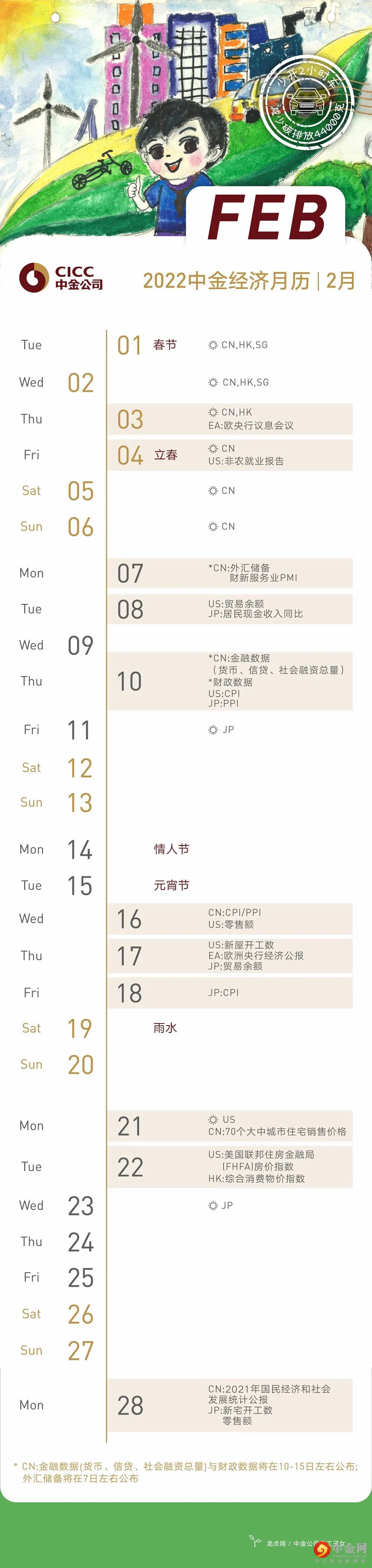 中金经济数据月历 | 2022年02月