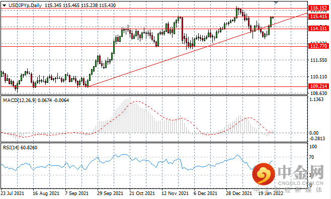 USDJPY已经开始测试 115.41 阻力线,同时突破上升趋势线。多头似乎已经找到支撑,如果突破成为现实,则可能对 116.15 上限进行另一次测试。动量指标有急剧上升的轨迹。