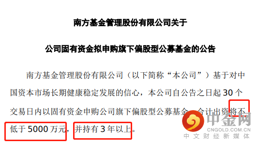 1月27日,南方基金发布《关于公司固有资金拟申购旗下偏股型公募基金的公告》,基于对中国资本市场长期健康稳定发展的信心,该公司自今日起30个交易日内,以固有资金申购公司旗下偏股型公募基金,合计出资将不低于5000万,并持有3年以上。
