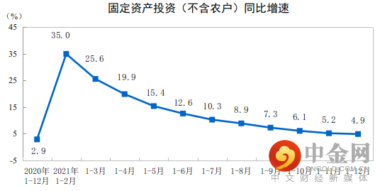 2021年1—12月份,全国固定资产投资(不含农户)544547亿元,比上年增长4.9%;比2019年1—12月份增长8.0%,两年平均增长3.9%。其中,民间固定资产投资307659亿元,比上年增长7.0%。从环比看,12月份固定资产投资(不含农户)增长0.22%。