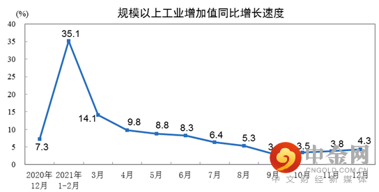 2021年12月份,规模以上工业增加值同比实际增长4.3%,比2019年同期增长11.9%,两年平均增长5.8%。从环比看,12月份,规模以上工业增加值比上月增长0.42%。2021年,规模以上工业增加值比上年增长9.6%,两年平均增长6.1%。