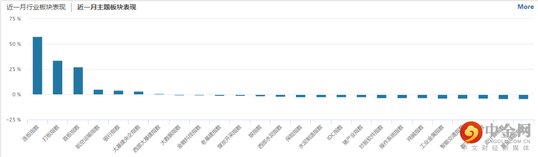 主题板块方面,连板打板首板指数涨幅居前,航空运输、银行和大基建也有小幅上涨,云计算、数字货币、智能交通等则跌幅前列。