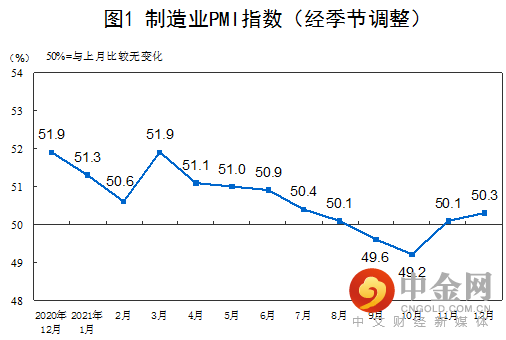 12月份,中国制造业采购经理指数(PMI)为50.3%,比上月上升0.2个百分点,高于临界点,制造业景气水平继续回升。