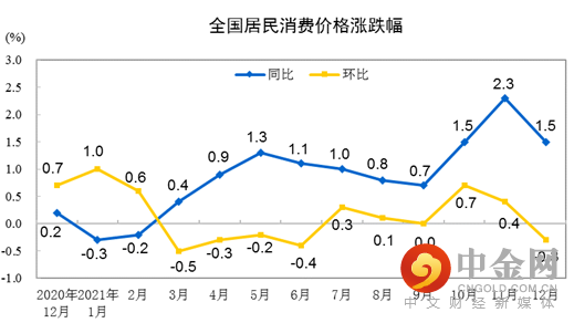 2021年12月份,全国居民消费价格同比上涨1.5%,环比下降0.3%。2021年全年,全国居民消费价格比上年上涨0.9%。