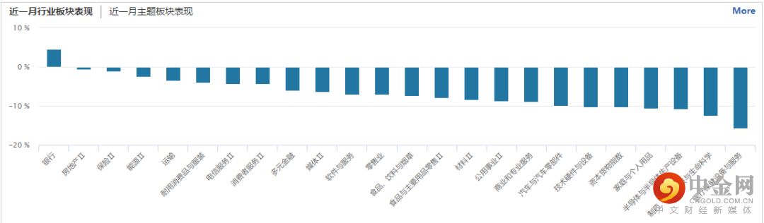行业板块方面,仅银行本月录得一定涨幅,其余板块尽数下跌,其中房地产、保险、能源等跌幅相对较小,医疗设备、医药、半导体等跌幅居前。