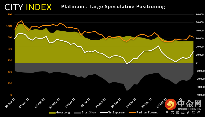铂金期货净多头头寸增加近一倍,升至10周以来最看涨水平