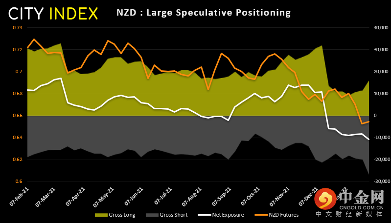 纽元人气仍然低迷,净空头敞口升至2020年6月以来最看跌水平。但在总空头升至最高水平同时,总多头规模也有所增加。看起来,投资者要么在对冲押注,要么在低吸。鉴于新西兰联储态度强硬,通胀持续飙升并远超联储目标,我们倾向于后者。