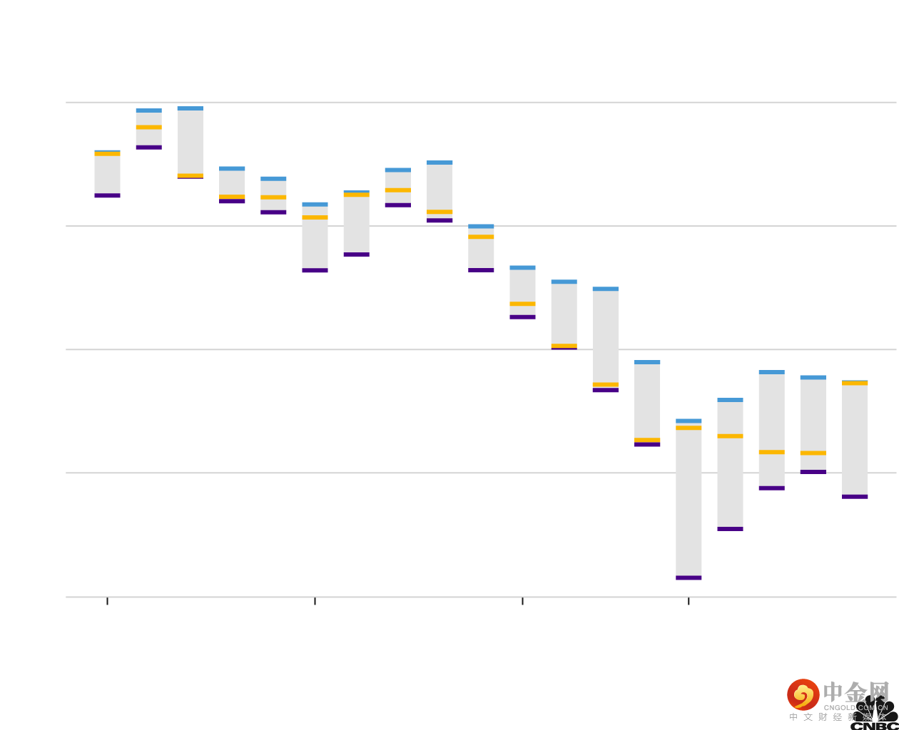 正如预期的那样,美联储会议后美元大幅上涨,美元指数本周收于 97.18 附近。美元走强,贵金属自然回落:黄金下跌 3.4%,白银跌幅高达 8%。