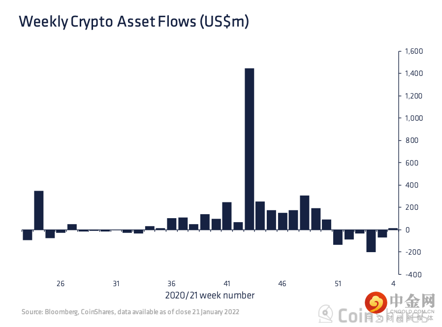 资金流入由以 BTC 为重点的基金领投,带来了 1380 万美元。然而,以 ETH 为重点的基金流出了 1560 万美元。与此同时,以 SOL 为重点的基金吸引了 150 万美元,其中 DOT 和 ADA 分别吸引了 150 万美元和 140 万美元。多资产代币投资产品净流入 800 万美元。