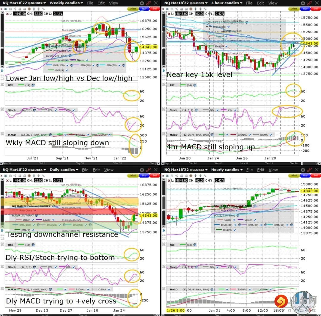 纳斯达克100指数期货(NQ)周线图/日线图/ 4小时图