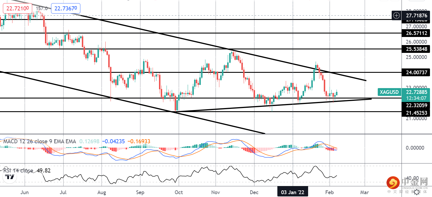 除了美元,鉴于俄罗斯和乌克兰局势的持续不确定性,我们看到黄金的避险兴趣仍然存在。尽管俄罗斯否认这一点,但仍有报道指出俄罗斯即将入侵,但紧张局势仍然很高。如果情况恶化,金价应该会在短期内找到坚挺的支撑。