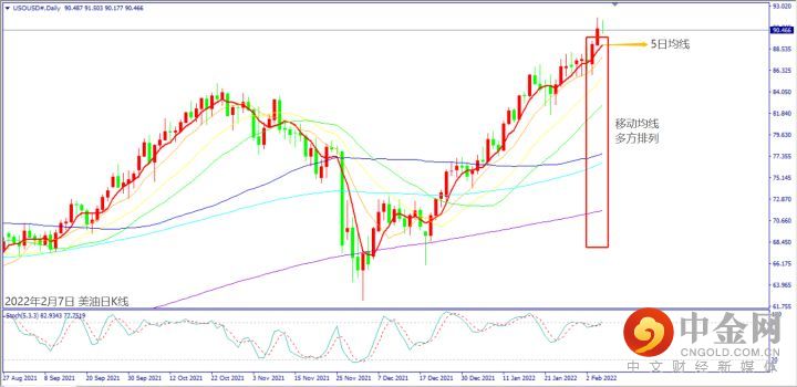 上周欧美公布新冠确诊人数出现趋缓,但是欧美公布经济数据大都不及市场预期,造成美油价格介于85~88美元间震荡。上周四(3日) 至上周五(4日)地缘政治紧张和极寒天气影响,带动美油上涨近6%,美油价格冲上90关口再创七年新高。