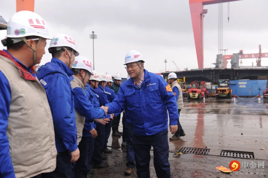 王琦充分肯定大家过去一年辛勤付出和取得的优异成绩,他提出各部门要围绕“夯实大型邮轮主体地位,提升民船海工盈利能力”的经营方针和“细化体系、创新管控”的管理主题,在转型升级上再上新台阶,在高质量发展上取得新突破。他强调,新的一年里要进一步提高安全意识,更加关注本质安全,安全平稳实现全年各项生产经营目标。王琦一行还来到综合楼,向邮轮项目部和内装工程部乔迁新址表示祝贺,他期望大家2022年继续奋勇拼搏、协同创新,坚决打赢邮轮内装工程攻坚战,全力以赴保障国产大型邮轮首制船建造进度和项目风险科学管控。