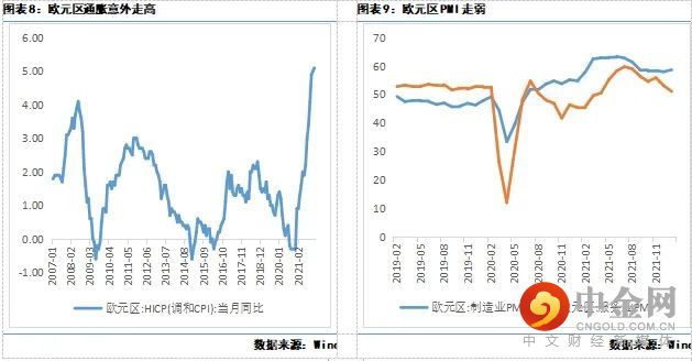 1)欧元区通胀意外上行。2月2日发布的1月欧元区调和CPI同比5.1%,较上月上行0.1个百分点,创出新高,明显高于市场预期值4.4%。不过剔除能源和食品等因素后,欧元区1月核心CPI同比为2.5%,低于上个月的2.7%。