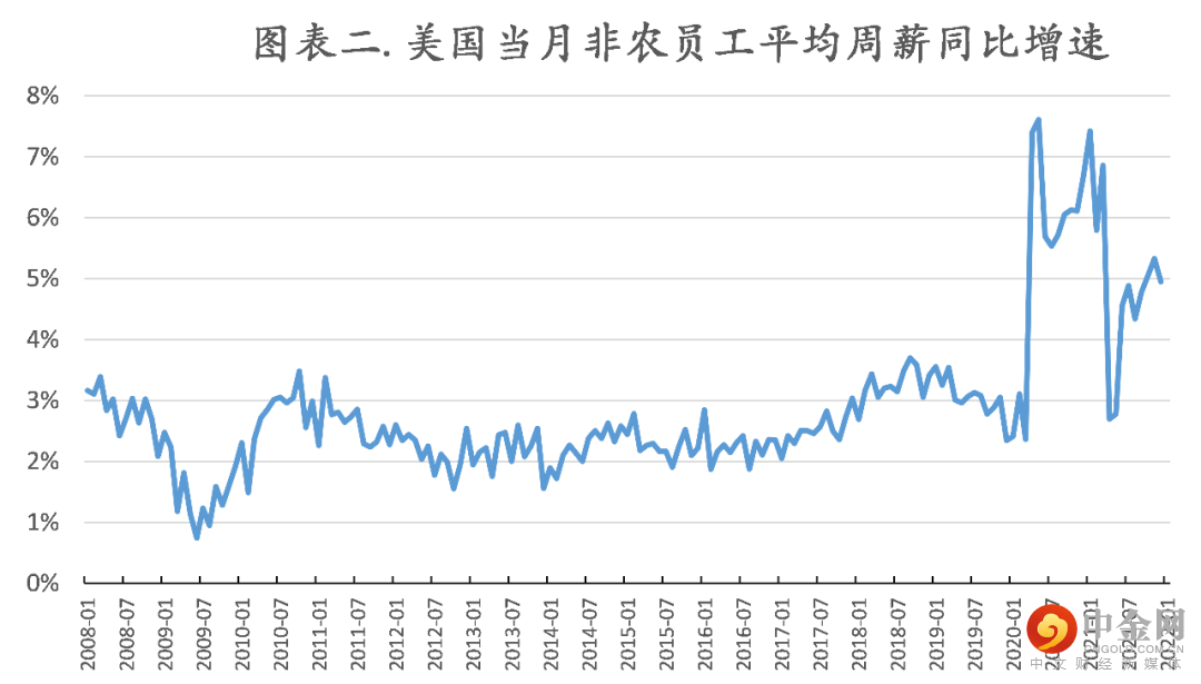 就业人手短缺造成的第二个问题就是美国就业者的工资水平上升加快。如图表二所示,2020年3月到2021年6月间美国工资水平显著上升是由于财政补贴所致,但财政刺激退出后,近期美国工资水平的上升则是因为企业招聘不到足够人手不得不提高工资的结果。