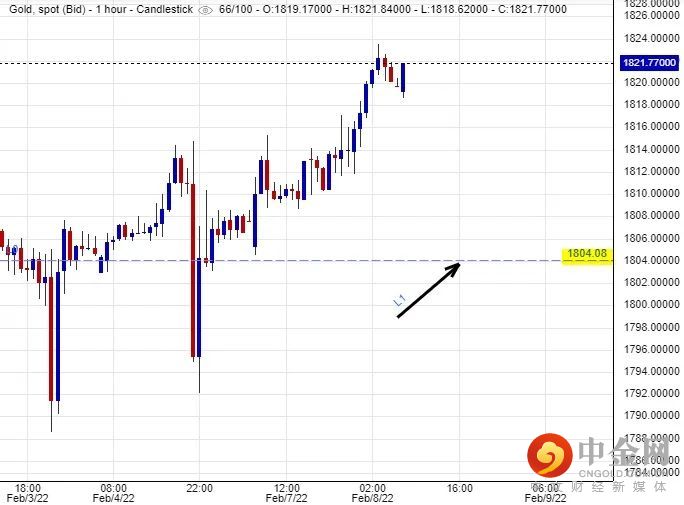 美国原油价格居高不下,当中除了是因为俄罗斯有机会入侵乌克兰而影响到整个能源市场供应面之外,市场人士亦担心石油输出国组织(OPEC)在增加产量方面不会轻易达到其对外所承诺的幅度,油价短期间有机会在高位徘徊,油价带动的通胀风险因素短期间应该能够给予金价短线的支持力。