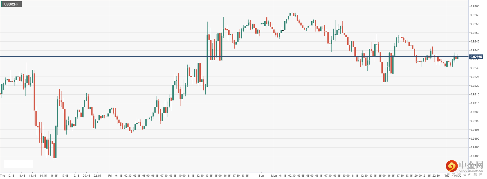 美元兑瑞郎周一收盘小幅回落后,今日开盘盘整在0.9236附近,因瑞士失业率数据有所下降,使得瑞郎获得小幅提振。