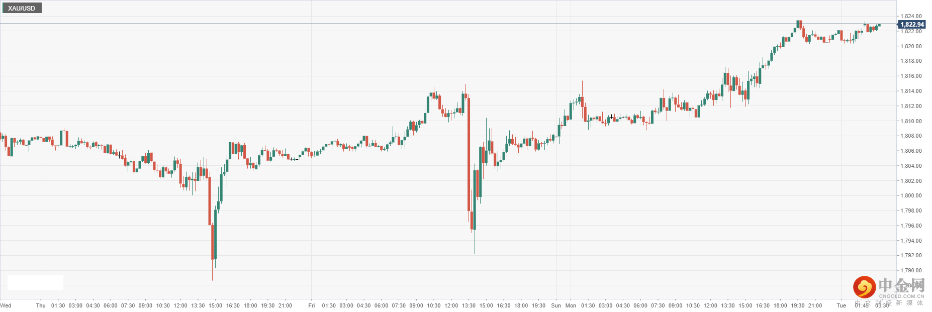 § 贵金属方面:黄金兑美元上升至1822.20。