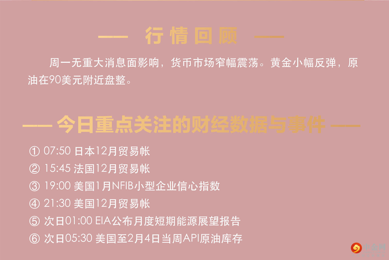 周一无重大消息面影响,货币市场窄幅震荡。黄金小幅反弹,原油在90美元附近盘整。
