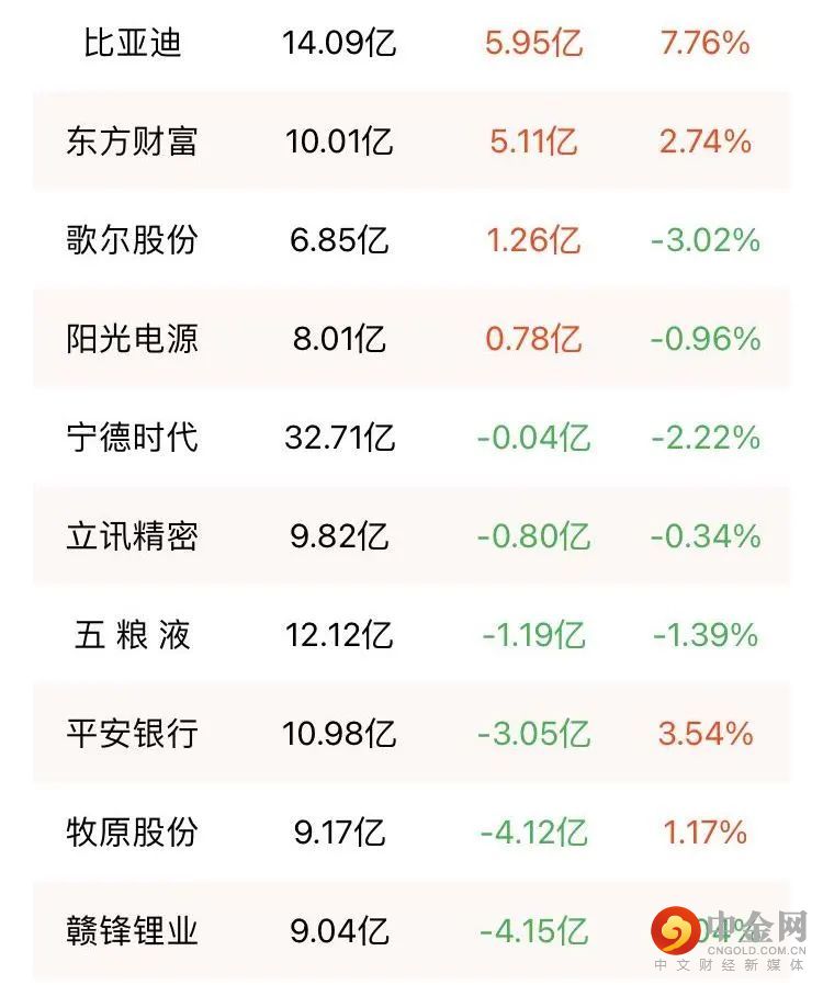 北向资金昨天净买入55.52亿元。中国平安净买入10.35亿元居首,招商银行、东方财富净买入超5亿元,兴业银行净买入超4亿元;此外,比亚迪净买入5.95亿元,净买入额创逾1个月新高,紫金矿业净买入超3亿元,隆基股份、中国中免、歌尔股份净买入逾1亿元。净卖出方面,赣锋锂业、牧原股份净卖出超4亿元,平安银行净卖出3.05亿元,药明康德、五粮液净卖出超1亿元。