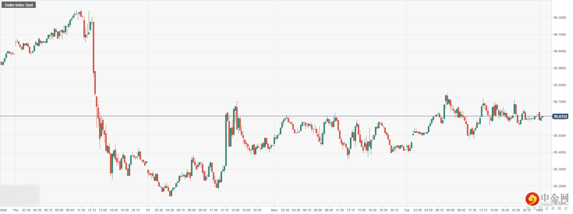 美元指数周二收盘小幅回升后,今日开盘涨至95.61附近,因稍早美国10年期国债收益率一度突破逾两年新高,提振美元上行支撑。