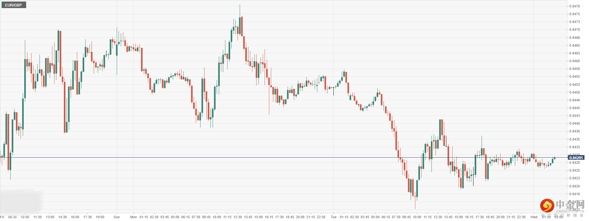 欧元兑英镑周二盘中大幅震荡下跌后,今日开盘盘整在0.8429附近,因英国零售销售数据普遍利好,导致欧元下行疲软,英镑则上行提振。