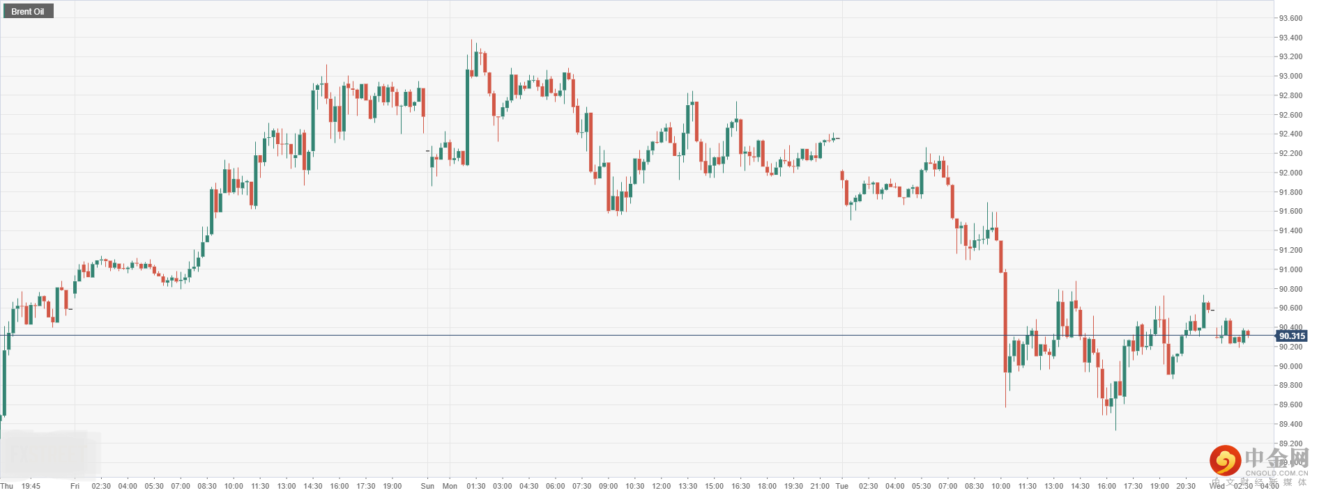 布伦特原油周二收盘大幅回落后,今日开盘跌至90.31附近,由于美伊恢复谈判将重启国际核协议达成的可能性越来越明朗,导致油价下行疲软重挫。