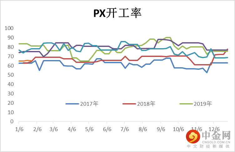 中上旬浙石化PX900万吨负荷仍在65%至70%,月底浙石化一条200万吨PX升温重启,PX加工费高位回落;