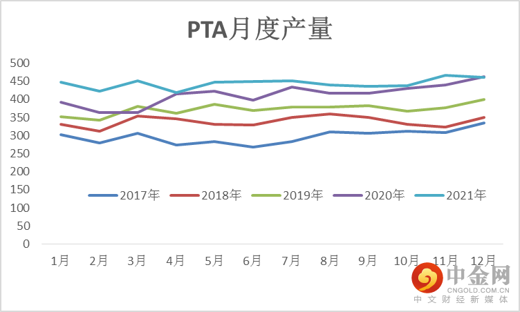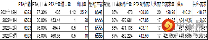 1月PTA产量预计476万吨,1月份PTA亚东石化及虹港石化装置在月初相继重启,三房巷及福海创装置进入检修,而逸盛宁波、逸盛大化装置降负后恢复运行,另外逸盛新材料2号线360万吨在月底前开始投料,2月逐步稳定生产。综合来看,月内PTA供应量处于高位。1月PTA平均开工率为79.5%,较上月上升 7%。
