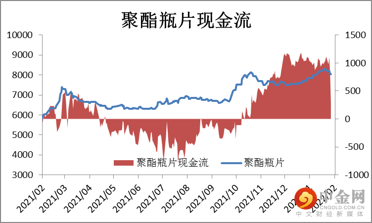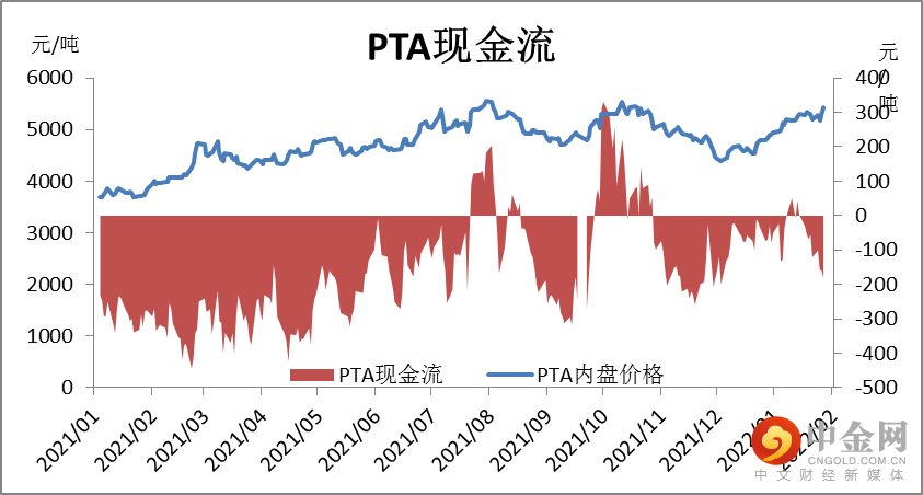 1月PTA现货市场平均加工费上涨至620元/吨,同比增加4%。主要国际原油价格上涨强势,成本端支撑良好,另外PTA现货流通性偏紧,加之聚酯负荷相对高位,均支撑价格及加工费处于高位。