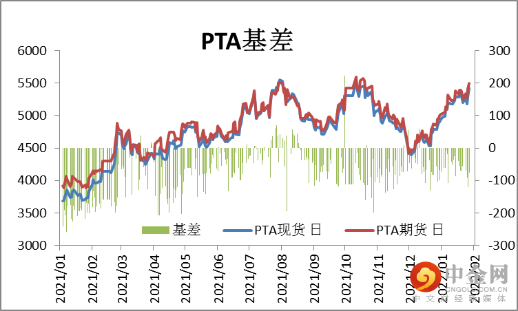 1月PTA基差总体表现偏强,成本上升弱化了PTA供大于求的影响,PTA 期货价格跟涨原油。