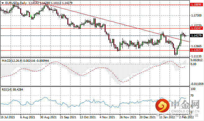 随着买盘势头开始放缓,USDJPY持续在 115.41 价位徘徊。 对该价格区域的多次测试已导致看跌反弹,且可能再次出现这种情况。动量指标停滞在看涨区域。