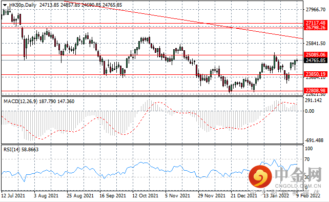HK50 指数已回到 25,085 阻力线,因为买方将在过去3个月大部分都处于区间交易后再次测试反弹。鉴于价格走势在之前的情况下拒绝该阻力位,因此需要坚定的信念来推动突破。
