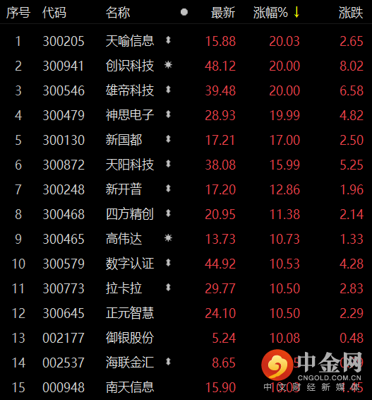 2月9日,数字货币题材再度引爆两市,受消息影响早盘大幅跳空高开,带动数字经济、支付相关板块上涨。截至收盘,天喻信息、创识科技、雄帝科技、深思电子等20只个股涨停。其中,恒宝股份、翠微股份均实现了四连板。