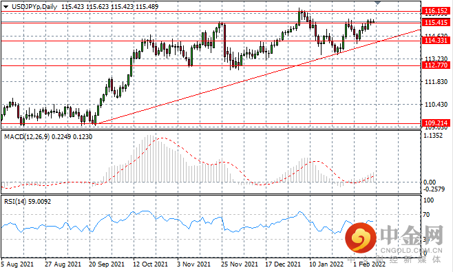 USDJPY未能突破 115.41 的价格水平,因为小型或十字星蜡烛表明买方缺乏信心。 自 9 月以来已经建立强劲的上涨趋势,116.15 价格线代表了上涨的上限。动量指标看涨。