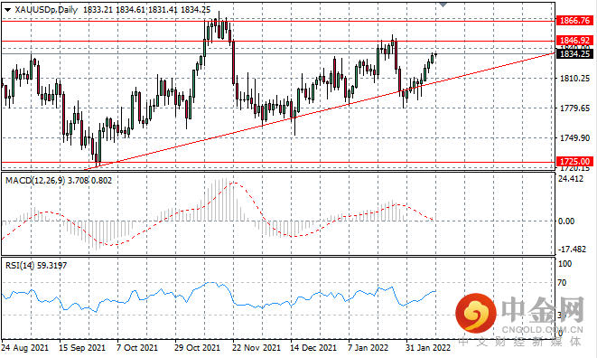 XAUUSD 已获得支撑,因为一连串看涨蜡烛将价格趋势推向 1846 阻力线。 此前,价格走势拒绝这一阻力区,因此需要坚定的信念来维持反弹并推动突破。动量指标看涨。
