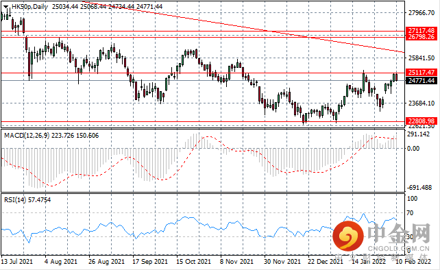 The HK50 index has rejected the 25,117 resistance line once again, as sellers return to contain price action in the current 22,808-25,117 price line. The index has remained in this consolidation range since mid-November as bullish conviction has been insufficient to sustain rally attempts.