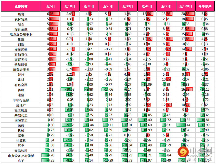 通过对各行业的周期涨跌幅的观察,我们可以找到近期涨幅较好的行业。这些行业内存在一定的“动量效应”,也是近期的热点。