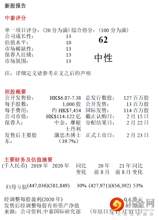 :基石方面,引入维梧资本、King Star两家作为投资者,认购约5,000万美元,假设按照发售价范围上限定价且未行使超额配股权,合计占发售股份约41.6%。