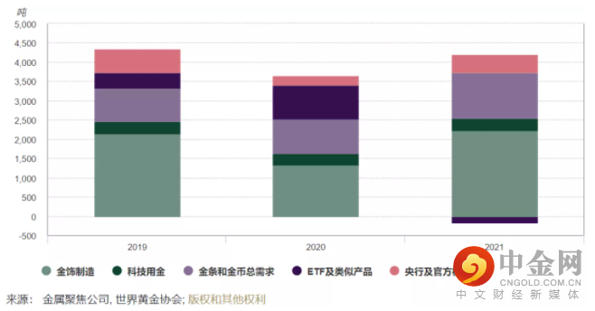 世界黄金协会最新发布的《2021年黄金需求趋势报告》显示,2021年全球黄金需求量(不含场外交易)增至4021吨,较2020年同比增长9.91%,其中四季度全球黄金需求为1147吨,同比大涨近50%,为近十个季度以来的最高水平。