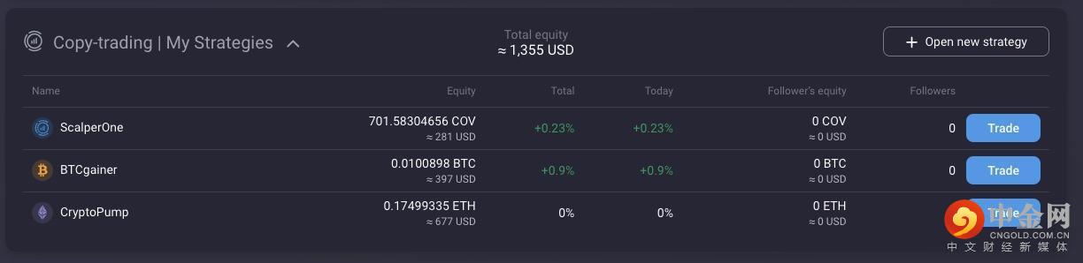 追随者还可以使用 COV 代币遵循以 COV 计价的策略。 未来的路线图更新将使那些利用并遵循以 COV 计价的策略的人受益于最大 75% 的利润份额,而不是标准的 65%。这些令人兴奋的路线图更新和 Covesting 的进一步 COV 代币实用程序改进将在未来几个月内公布。