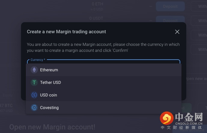 设置以 COV 计价的保证金交易账户与任何其他资产一样简单。