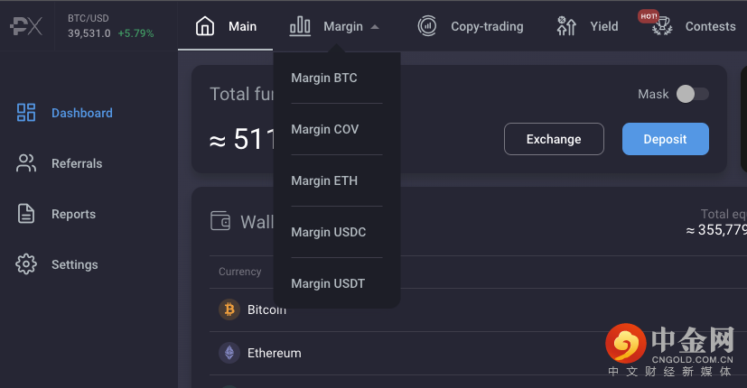 然后,平台用户可以通过专门从保证金部分下拉菜单中选择 COV 保证金账户来管理他们的头寸。